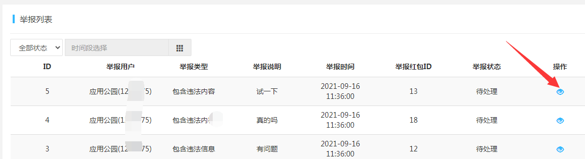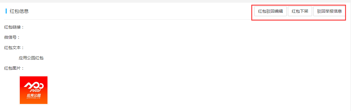 5.舉報管理:用戶可在app里舉報違規信息,管理員可進行紅包駁回編輯或紅包下架處理