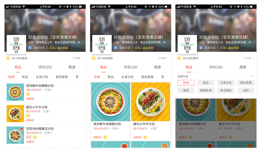頂部分類列表/宮格樣式(單店鋪分類過多,不建議使用頂部分類)