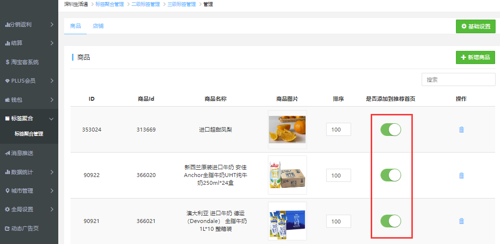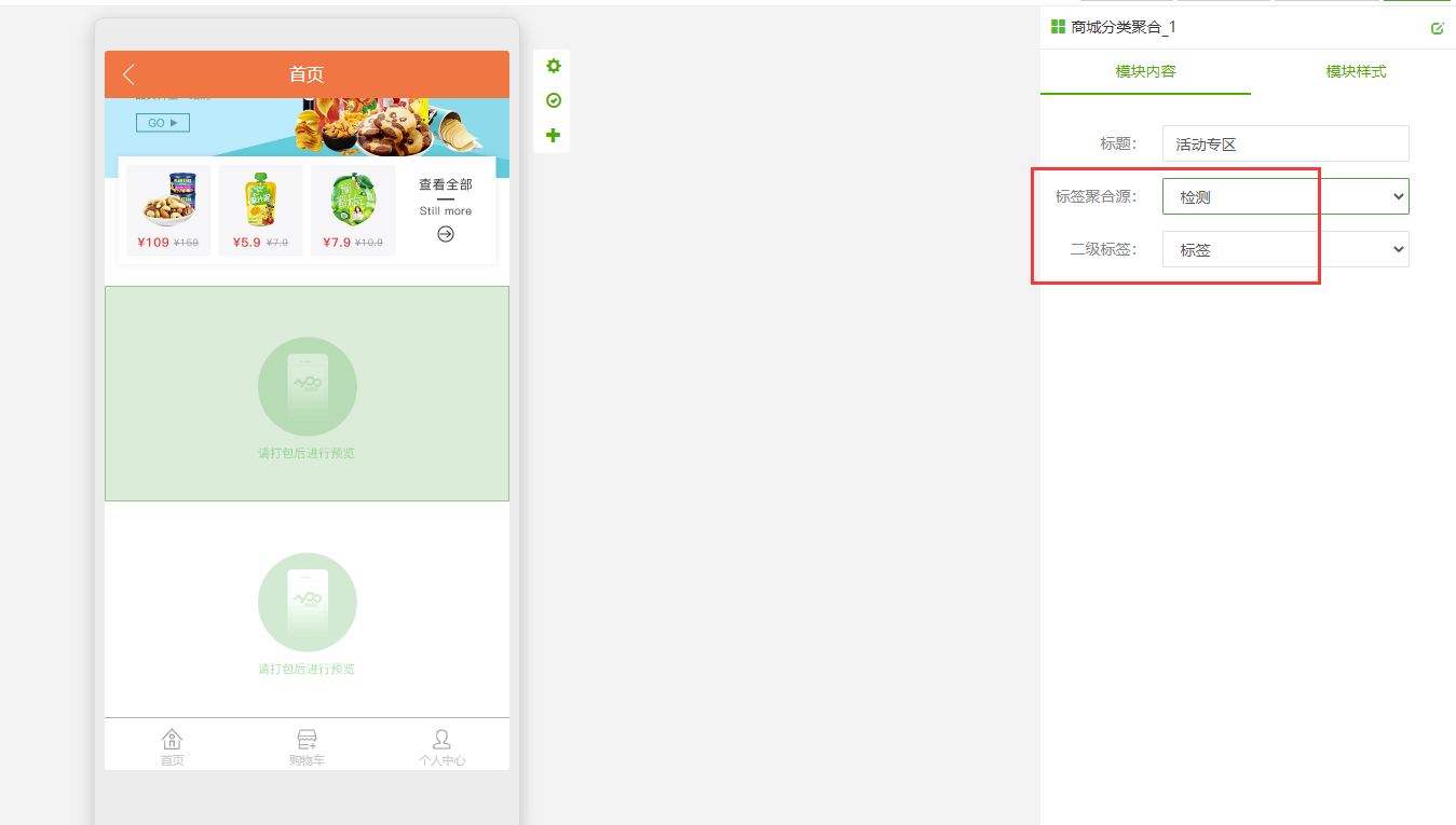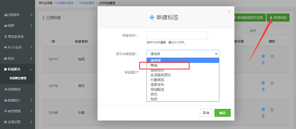 商城分類聚合獲取的是標簽管理的商城標簽內容。添加標簽至三級標簽可以選擇商城內容,添加好商城內容信息后以后進去可以進去添加已有的商城產品,添加好產品以后,把是否添加到推薦首頁即可。