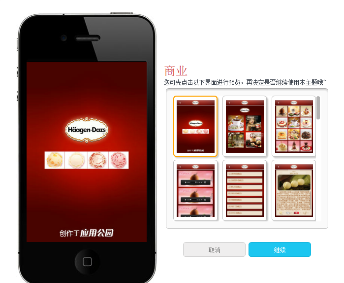 主題模式是應(yīng)用公園的中級模式,靈活豐富,適用性強,可以滿足大多數(shù)手機App的制作需求。現(xiàn)有商業(yè)、娛樂、旅游、健康、美食等十余款主題模板,熱門模板還將陸續(xù)開放。