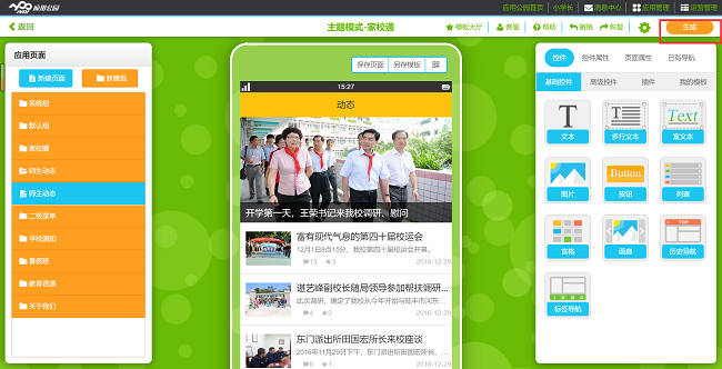 平臺支持蘋果(iOS)、安卓(Android)一鍵打包生成。在app制作的過程中,用戶還可以通過手機預覽助手,實時查看制作的效果。
