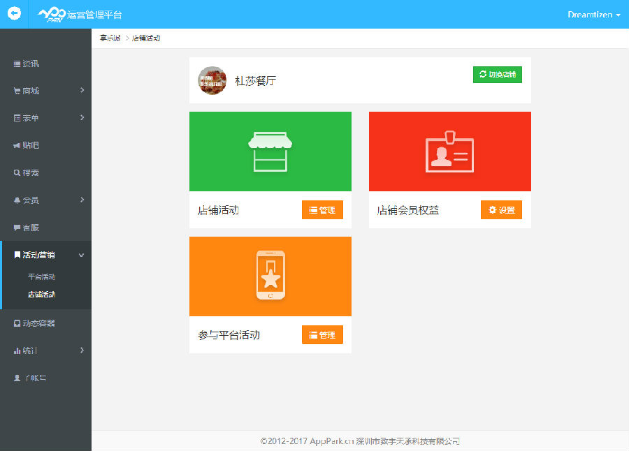 目前,應用公園的APP商城積分系統分為兩大體系,及平臺活動與店鋪活動。平臺活動是專門針對商城類APP,在這個APP所有的店鋪都享有某些設定的功能,對APP的推廣非常有用。而店鋪類的主要用于單獨的店鋪,主要是店鋪的主人為提升商品的銷售而設置的某些營銷活動。平臺活動與單獨的店鋪并不沖突,組合優惠效果當然更驚人。