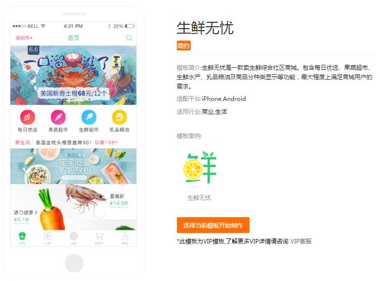 應用公園應廣大用戶的要求,特推出此官方“生鮮無憂”APP模板,大家可以一鍵使用。