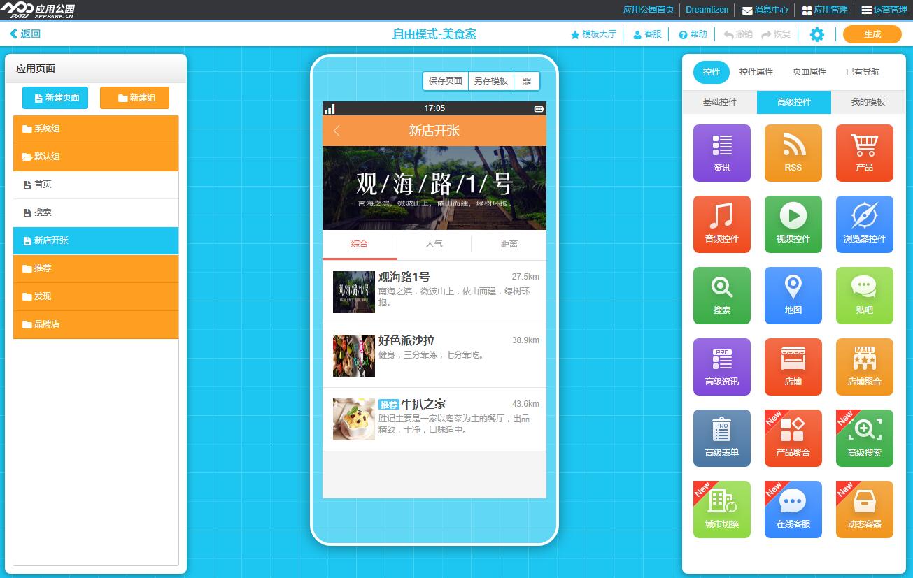 可以實現多行業的商家入駐,提供多品類商品和服務、內容多元化,利用應用公園的自動定位,精準推薦周邊的商家。