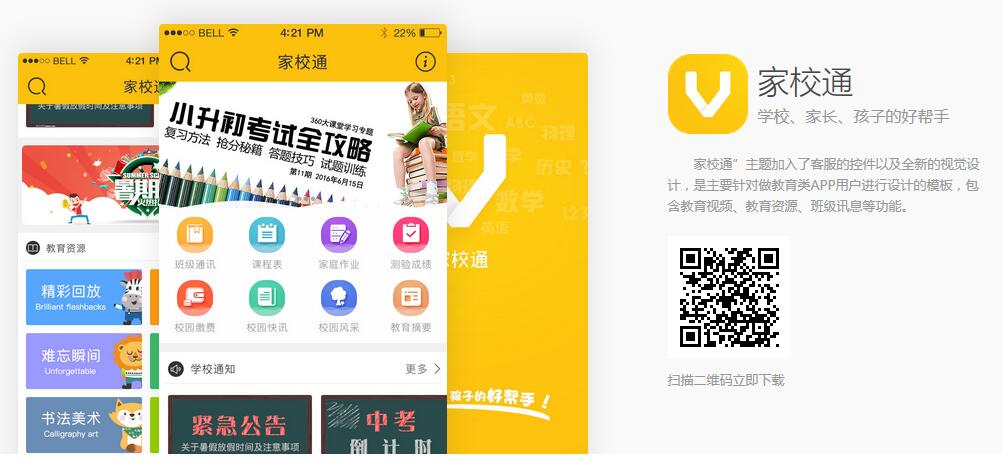 在學(xué)校教育領(lǐng)域,就有“家校通”這個成熟的APP,可以直接使用。“家校通”包含了學(xué)生、學(xué)校與家長三方所需要常見的教育APP功能。