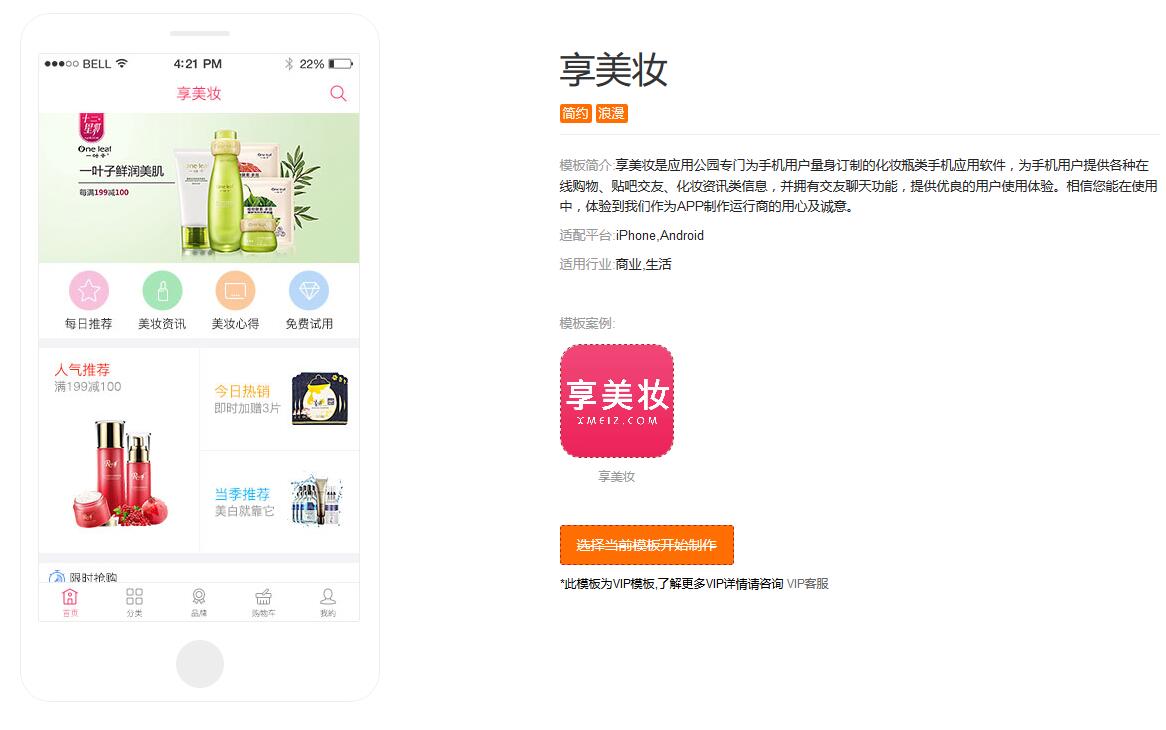 隨著移動互聯網技術的發展,現在不需要代碼編程,在應用公園就可以快速制作出一款美妝APP,而且還有成熟的整套原生APP模板可以一鍵使用。