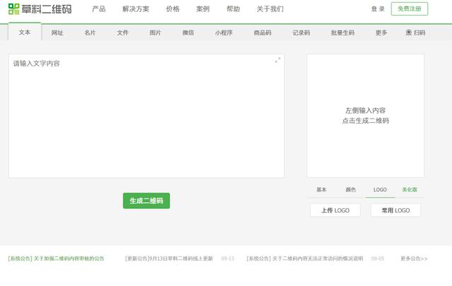 草料二維碼,無論是文本、網(wǎng)址、名片、文件、圖片等,都可以通過這個(gè)網(wǎng)站,一鍵生成二維碼,還有很多不錯(cuò)的免費(fèi)模板可以直接使用,還可以對(duì)二維碼進(jìn)行美化處理。